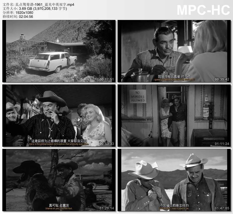 主 演 克拉克·盖博 玛丽莲·梦露 蒙哥马利·克利夫特 瑟尔玛·瑞特 伊莱·瓦拉赫 詹姆斯·巴顿 凯文·麦卡锡 埃斯特尔温伍德 雷克斯·贝尔 FrankFanelliSr.